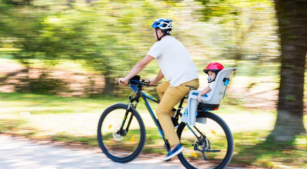 But with your child’s weight sitting high and to the rear, it can affect your balance, especially when mounting or stopping the bike.