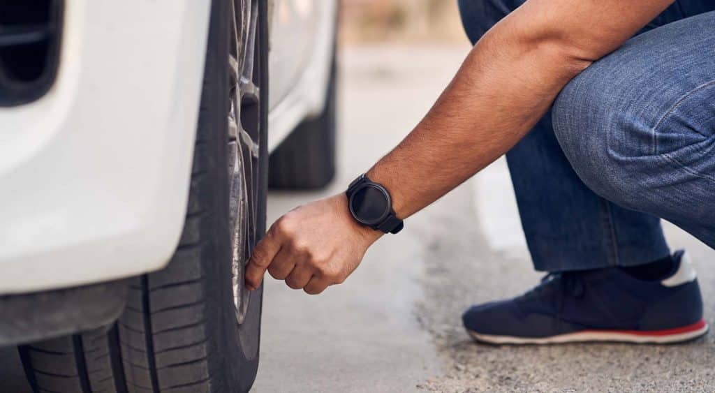 Check your owner’s manual to find the right pressure for your tyres. There may also be a sticker inside the driver’s door, in the glove box or on the fuel cap displaying the correct tyre pressure for your vehicle.